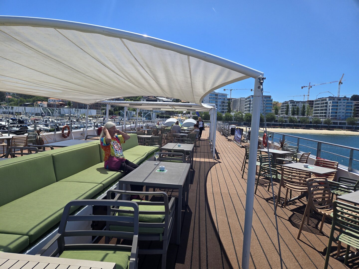 When we returned to the ship we were treated to an unscheduled evening sunset sailing around the harbor to enjoy the wonderful weather and the city lights. There was also some kind of a festival going on and the streets along the harbor had hundreds of locals out and about with music blasting and people just enjoying the sites. We also did the obligatory photos with our travel companions as well as the cruise and activity directors.