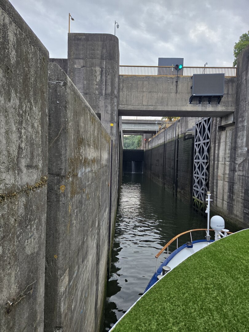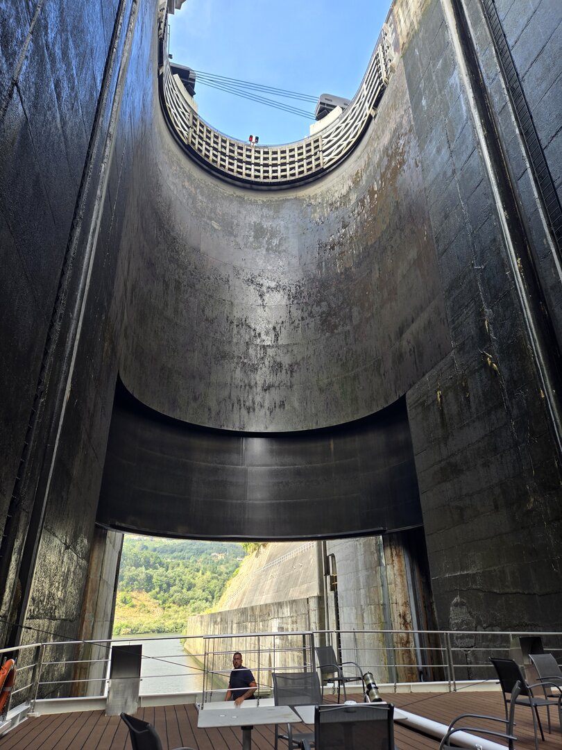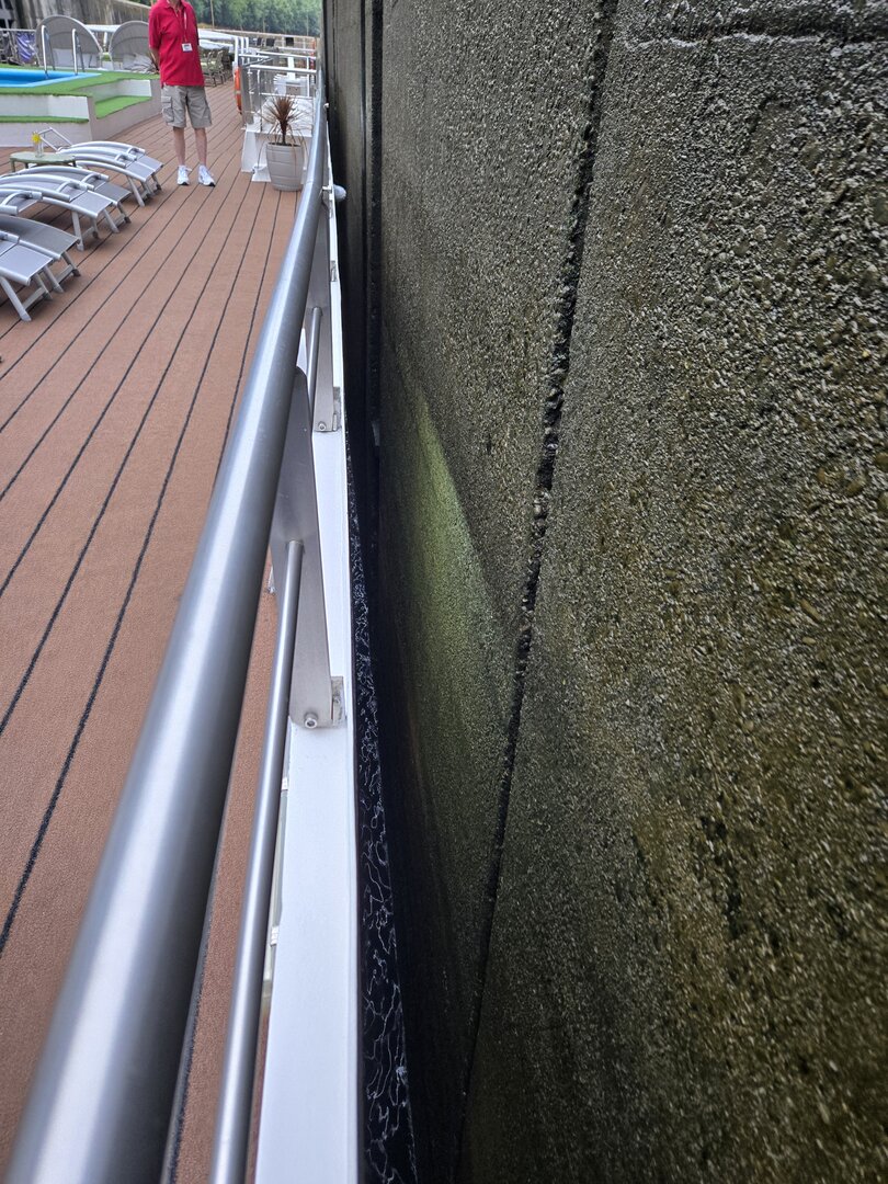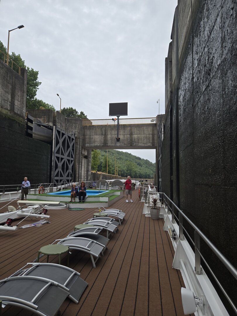 We did go through two locks and as you will see in the following pictures, there is not a whole bunch of margin for error concerning the width of river cruise ships. The second lock is the tallest in all of Europe at 115 feet. Pretty impressive.