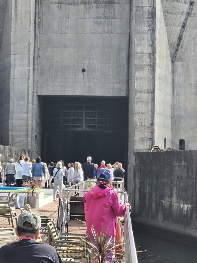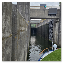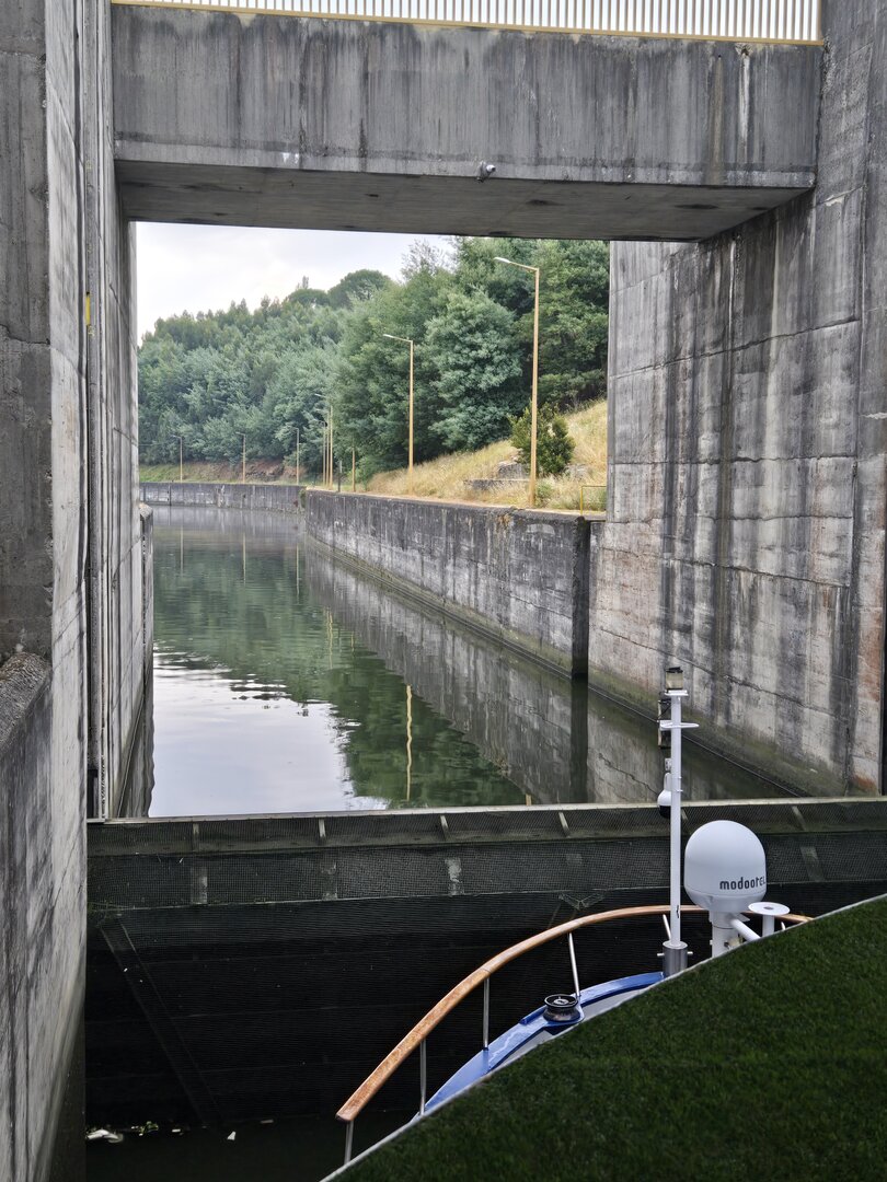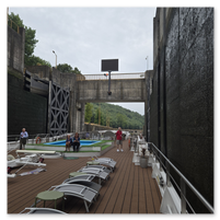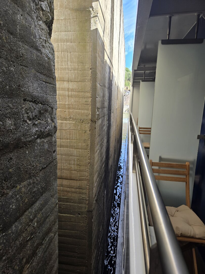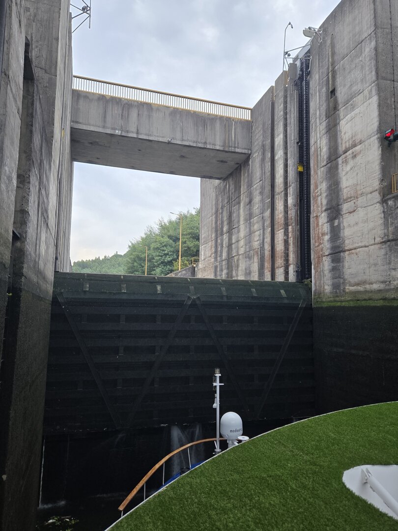 We did go through two locks and as you will see in the following pictures, there is not a whole bunch of margin for error concerning the width of river cruise ships. The second lock is the tallest in all of Europe at 115 feet. Pretty impressive.