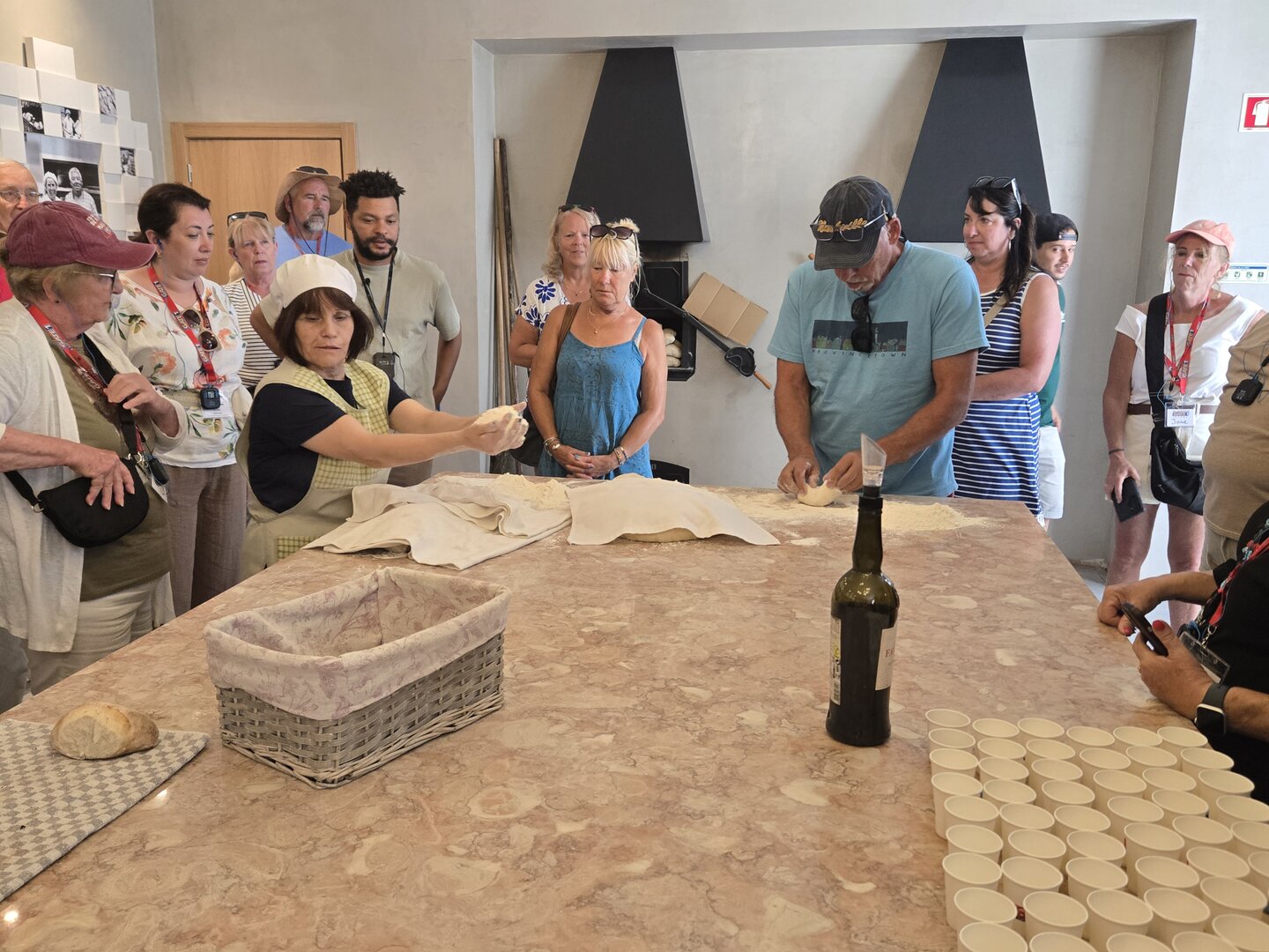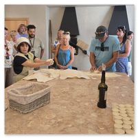 We stopped in to a local bread shop to get educated about their local pride, which is a four-cornered bread (said to be modeled after a cross), baked daily. Some towns folk bring their meats each day to have them baked into the bread. Many residents buy the bread three times a day to serve fresh with each meal. We watched the preparation, participated and tasted the bread too.