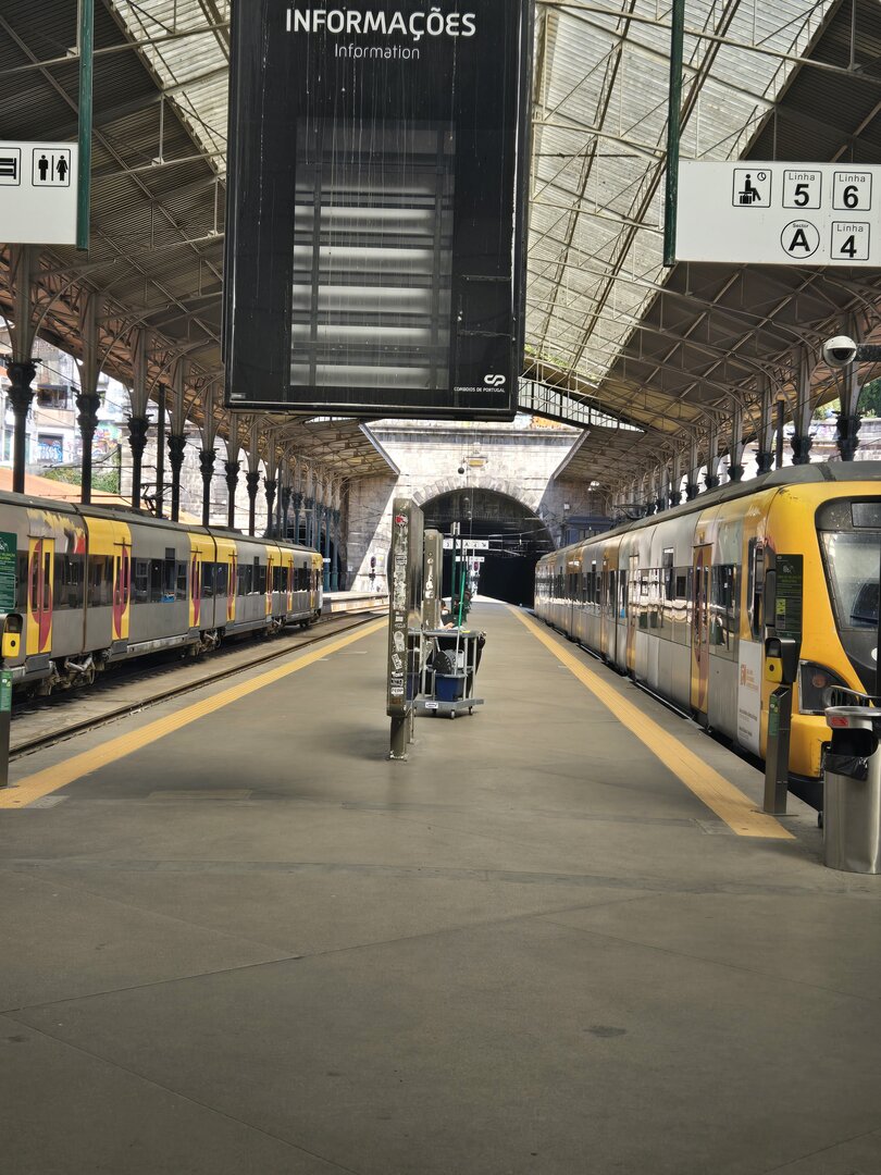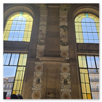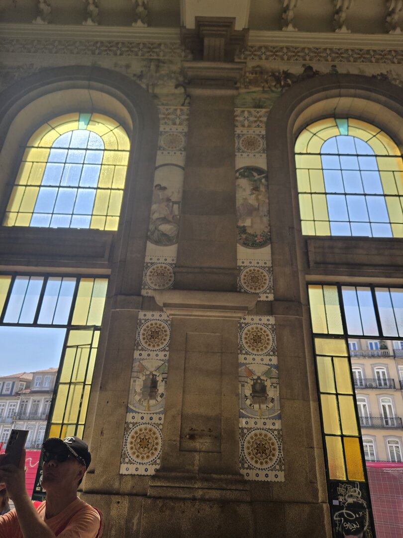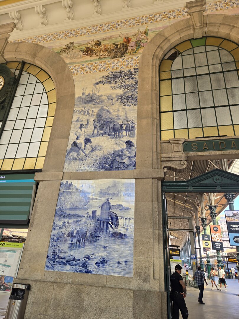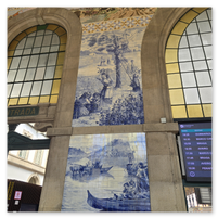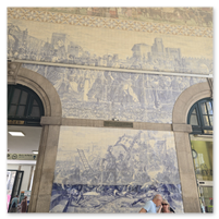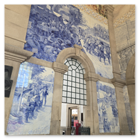Heading back to Porto today for a walking tour that included a cathedral, the stock exchange and the Porto train station, famed for the beautiful hand-painted azulejos tiles. Looking at the pictures, note that the tiles on several walls have what appears to be a "gauze" over them. This was done to protect the tiles from damage/cracking during construction at the station.