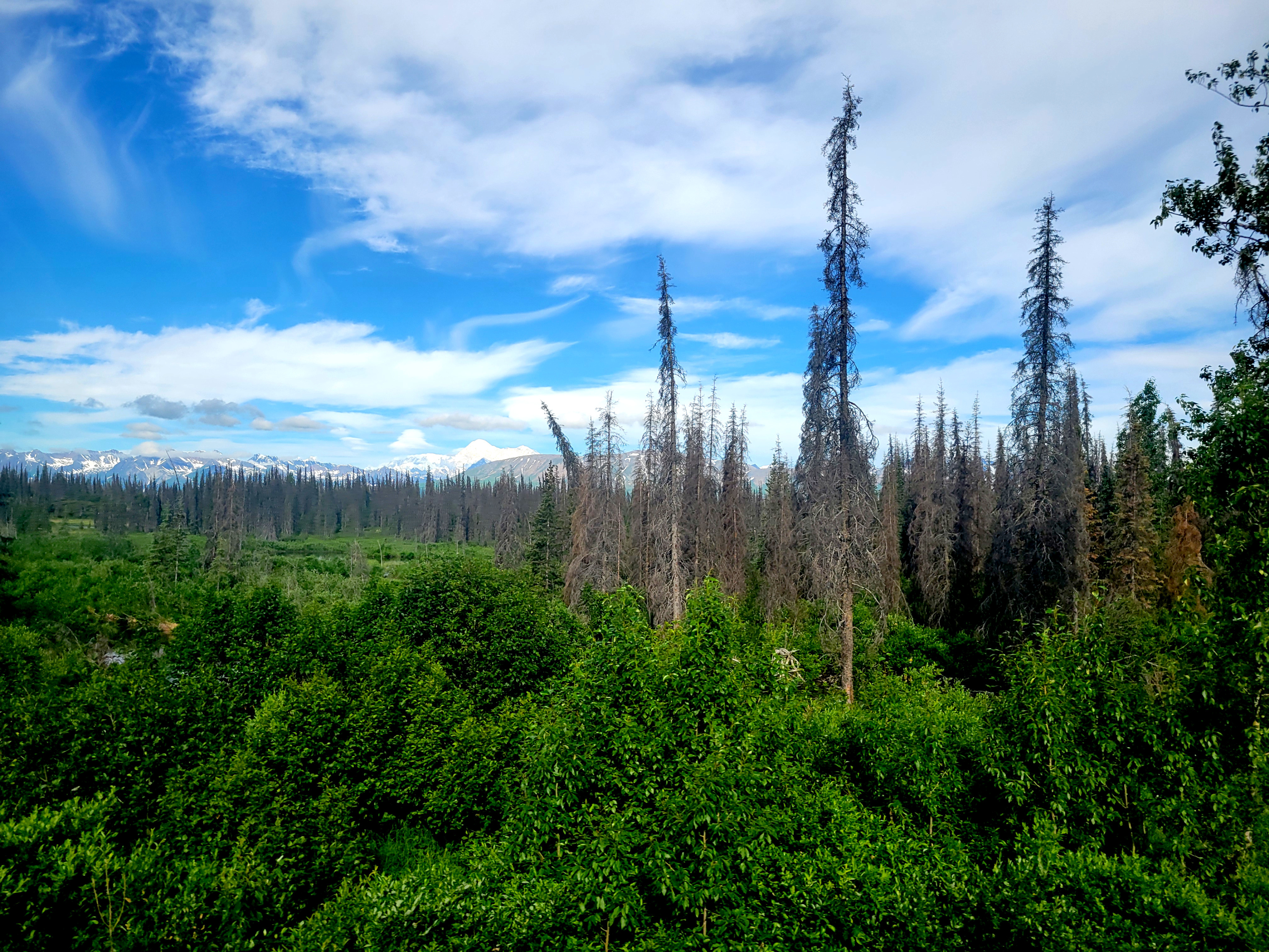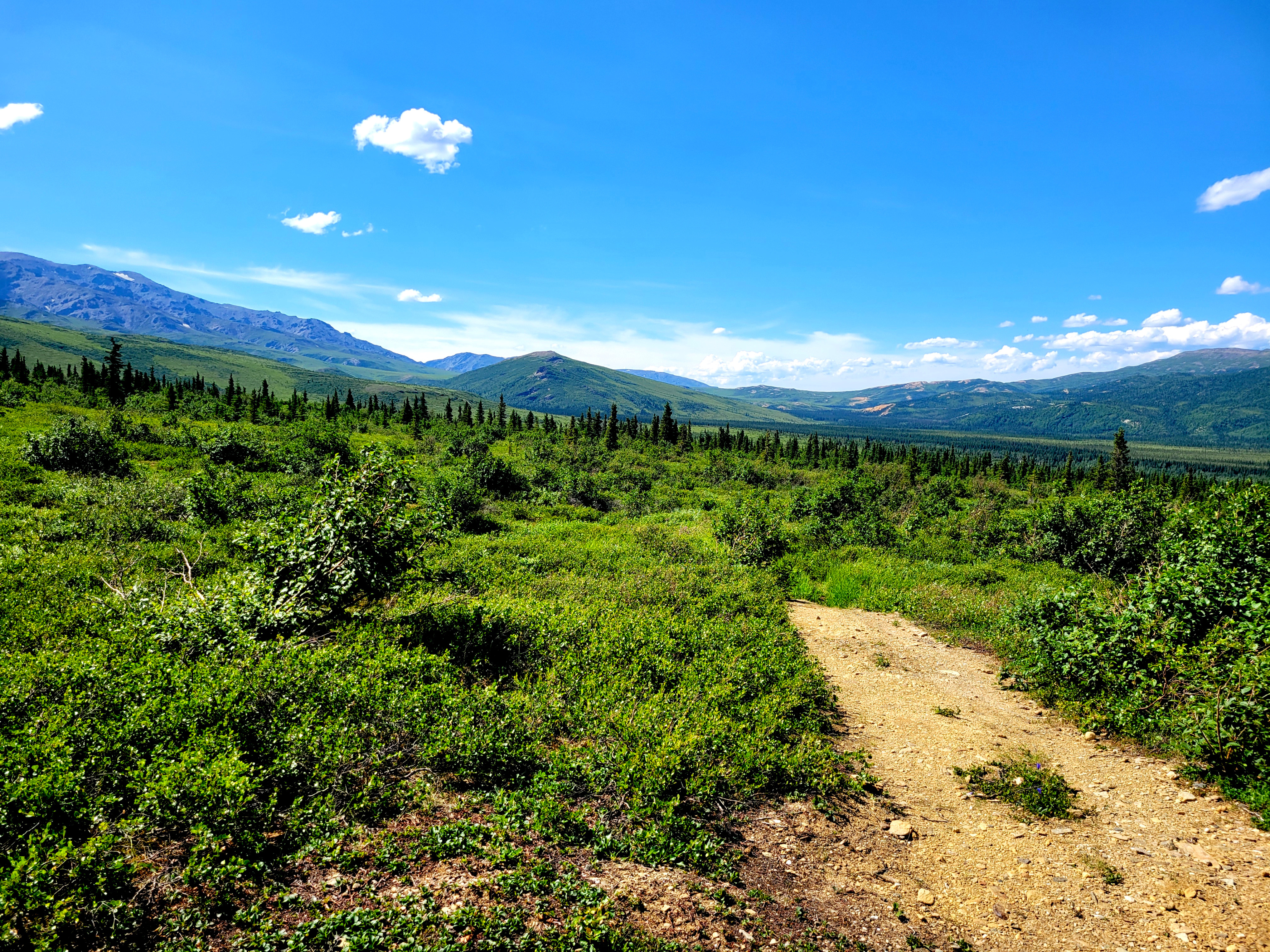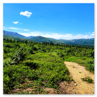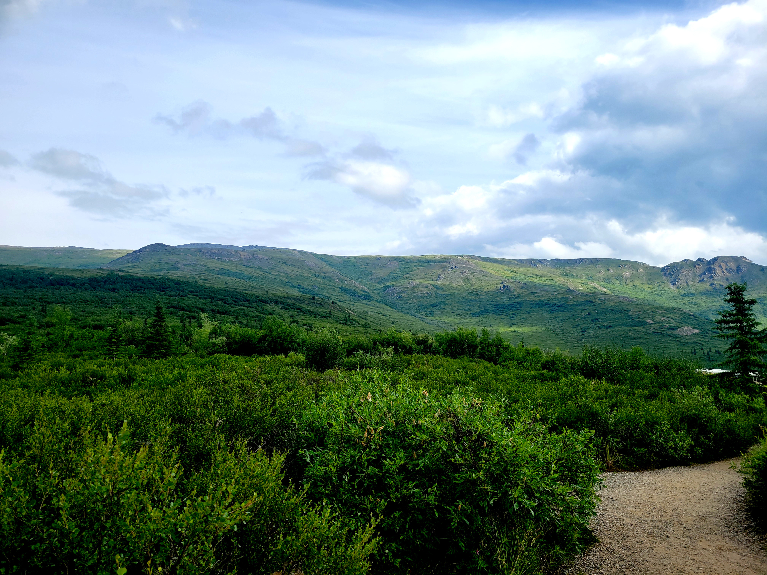 Denali is so big it creates its own weather and because of that, only 20%-30% of visitors get to see the peak. We were also told that only 10% of visitors see the entire mountain due to cloud layers that may cover the bottom, middle or peak at any given time. Count us among the lucky ones as we had a full, unobstructed view of the entire mountain the afternoon we arrived as well as the next day! It was absolutely breathtaking and as mentioned previously, it looked like a painting, not real. A relaxing nature walk around Byers Lake in the late afternoon/evening was beautiful and peaceful.
