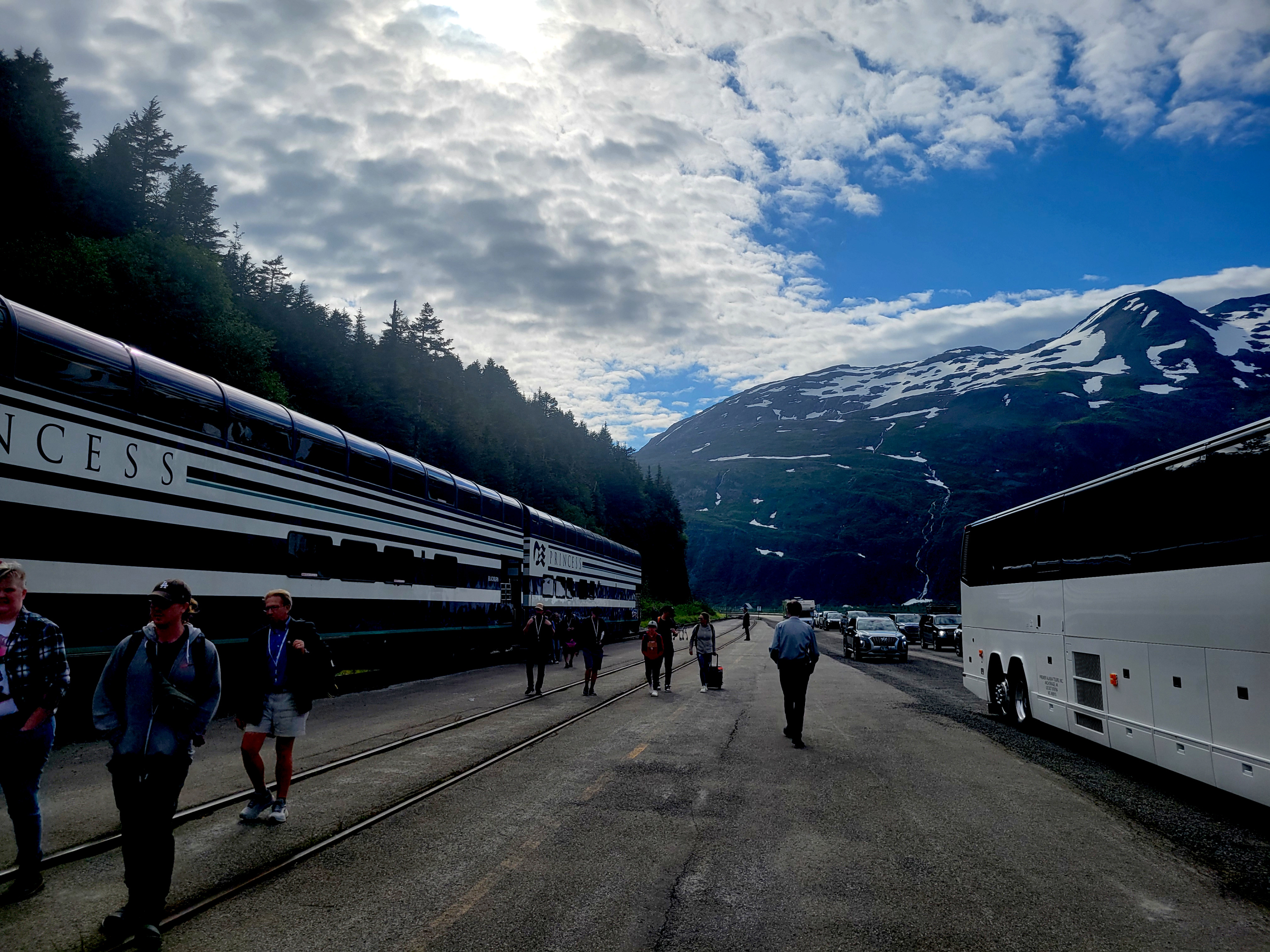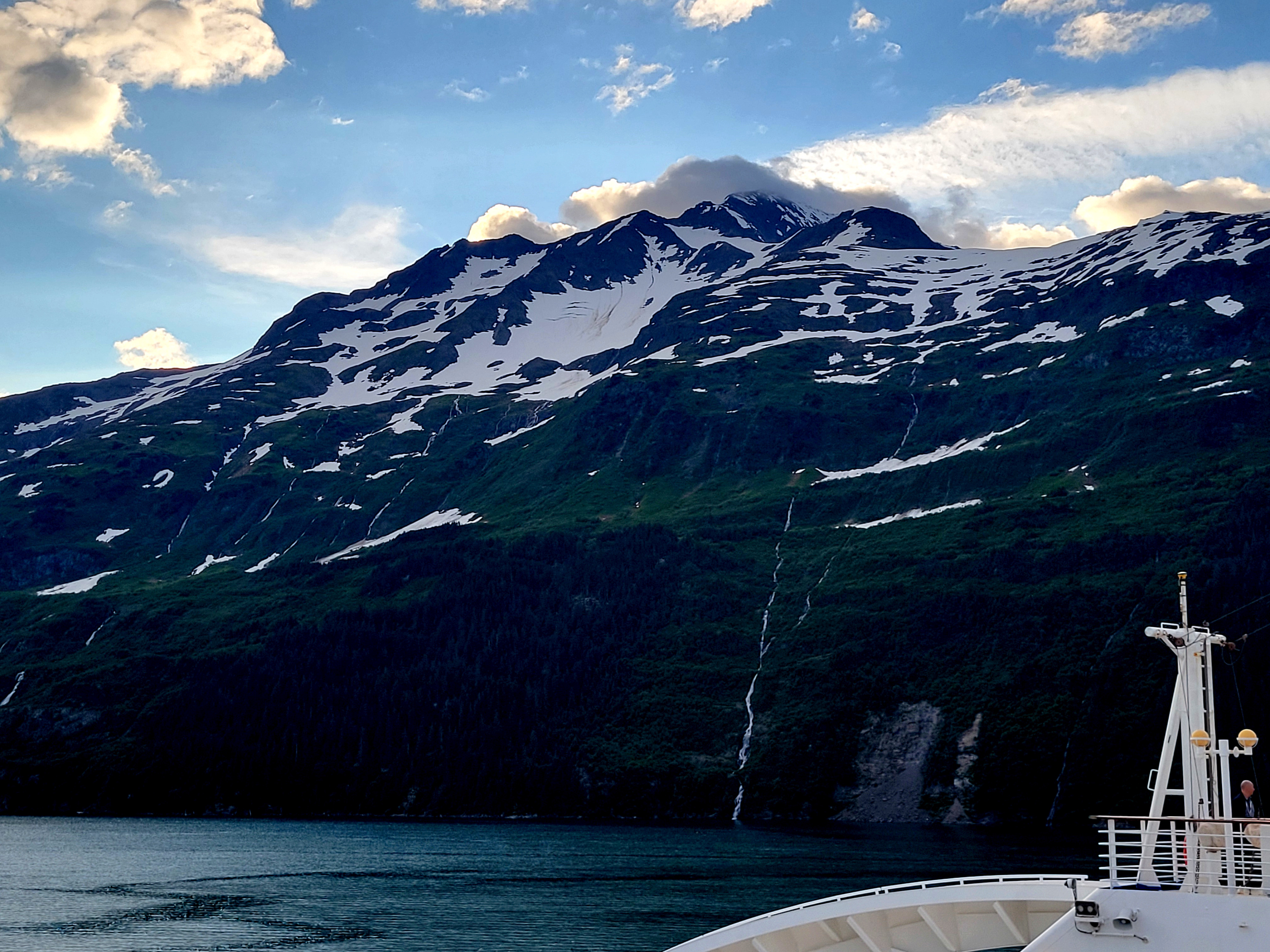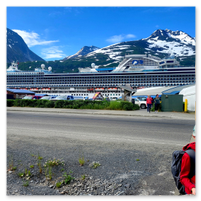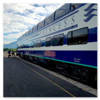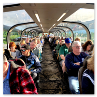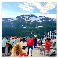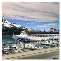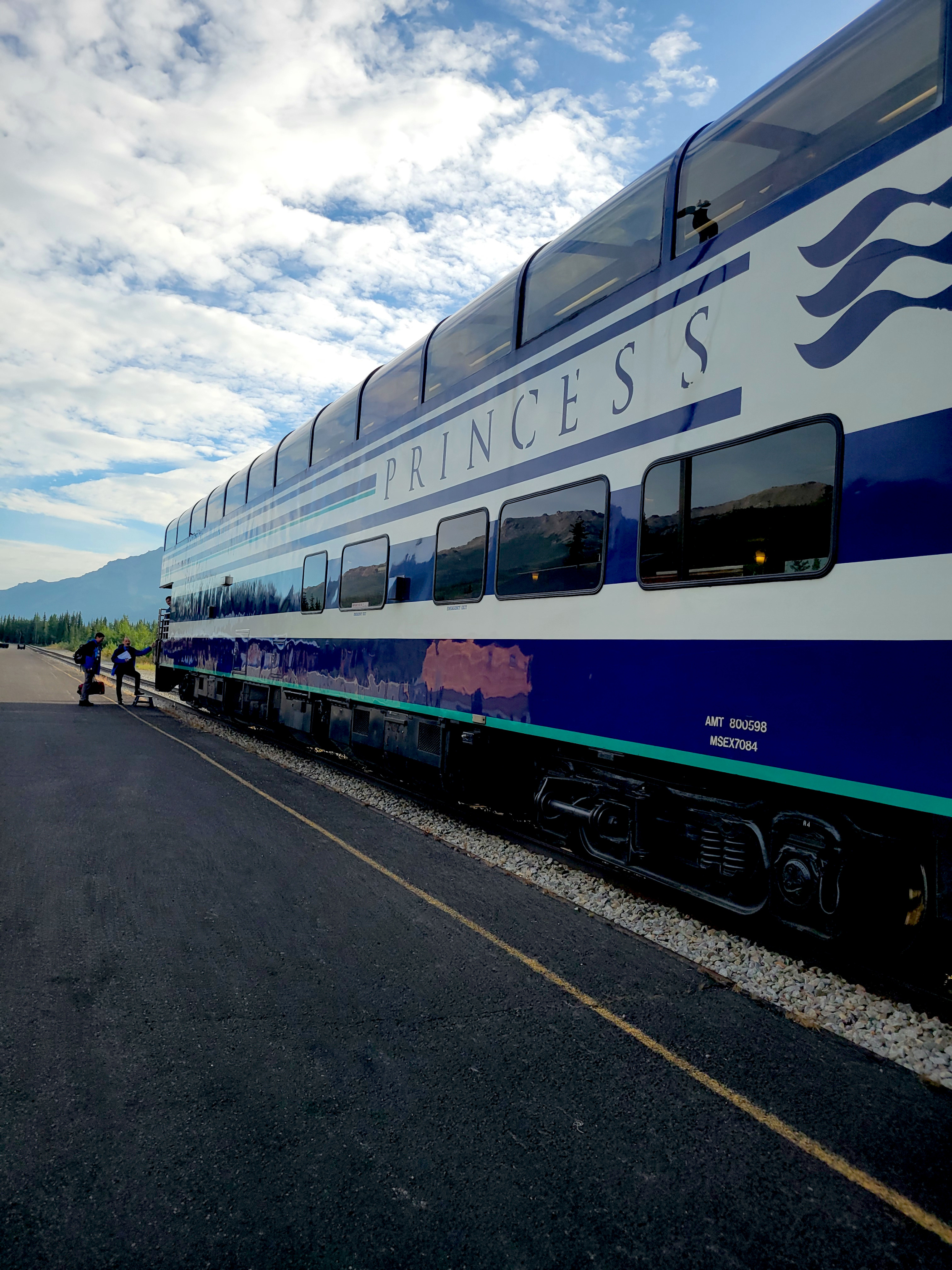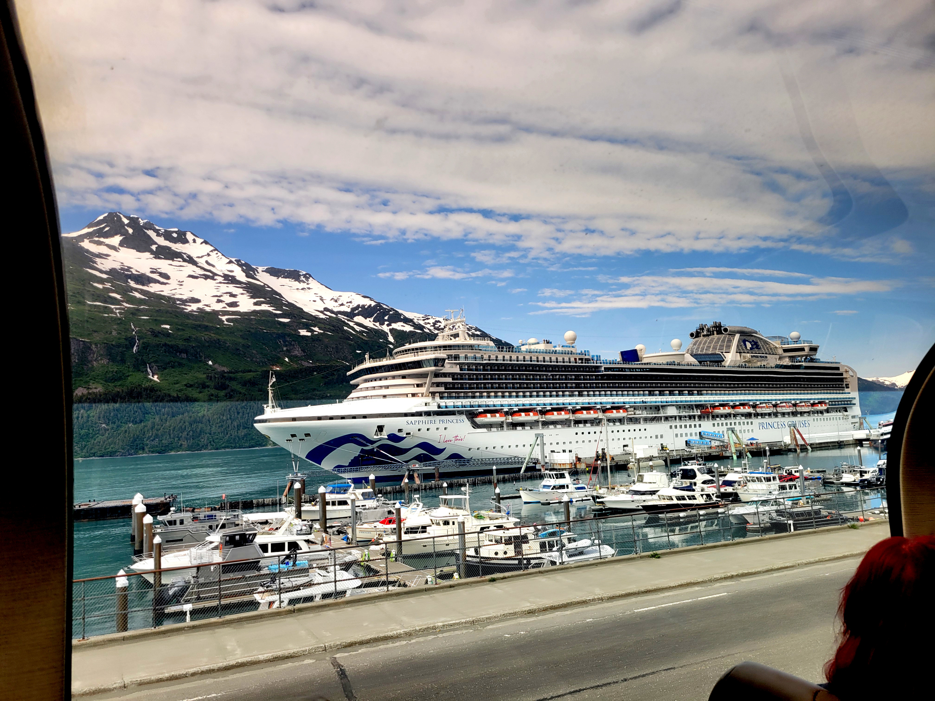 From Denali National Park we headed back to Anchorage (Whittier) to meet our cruise ship, the Sapphire Princess. The trip to pick up the ship was a nine-hour train ride on the Direct-To-The-Wilderness Rail Service. The train ride was really special with a glass panoramic domed roof to see the world as we went by. A sit-down lunch served in a dining room capped off the trip.