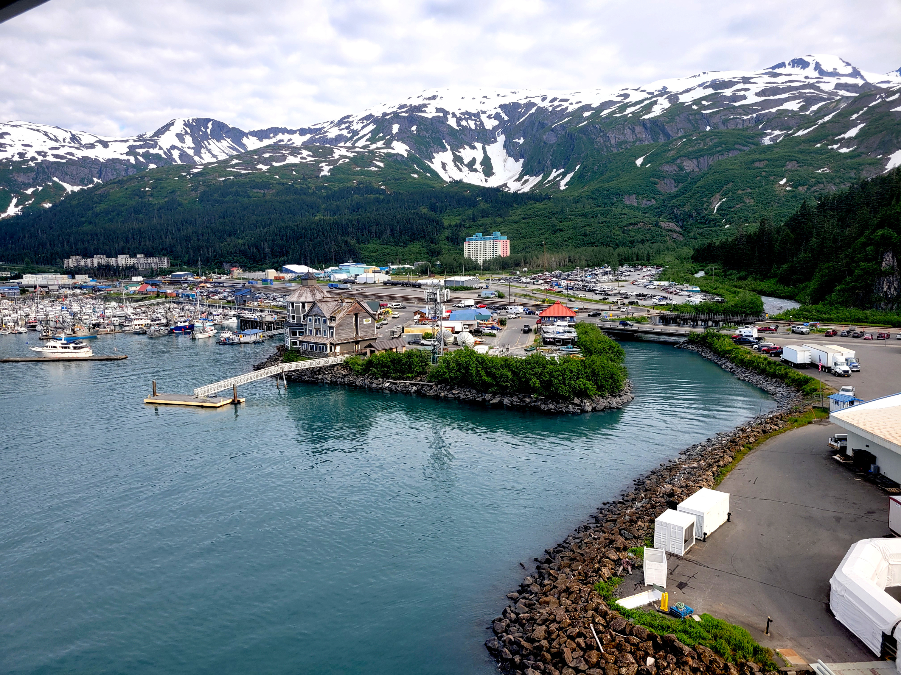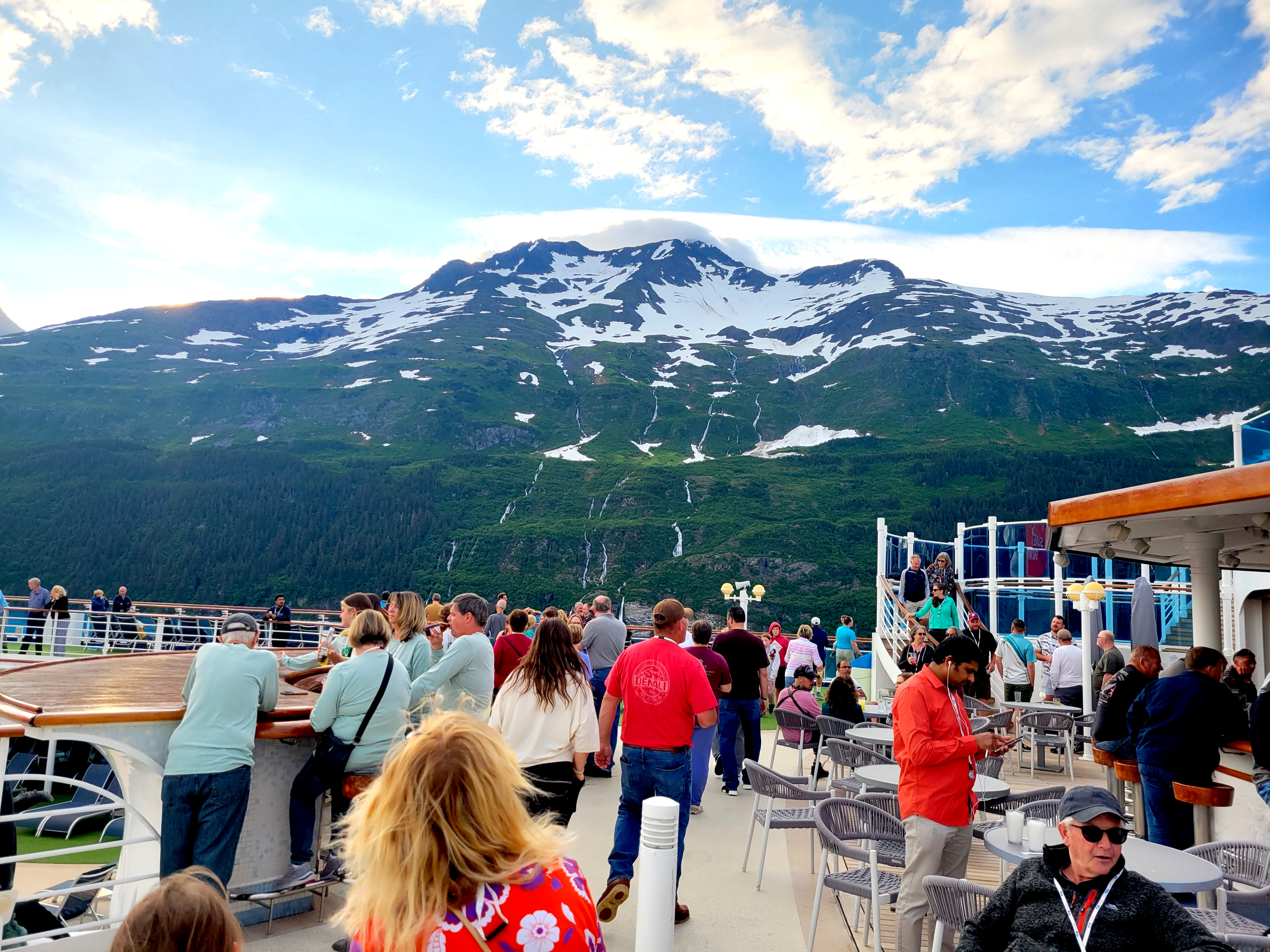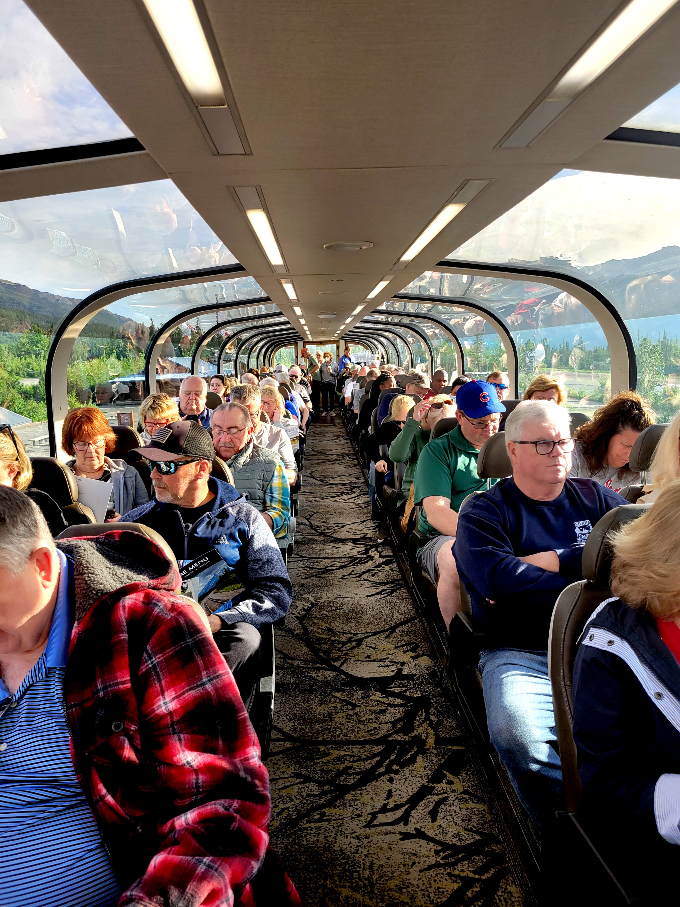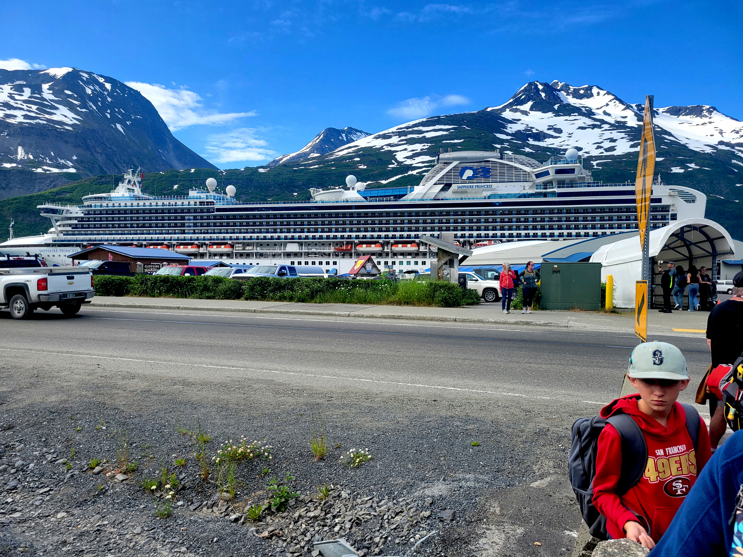 From Denali National Park we headed back to Anchorage (Whittier) to meet our cruise ship, the Sapphire Princess. The trip to pick up the ship was a nine-hour train ride on the Direct-To-The-Wilderness Rail Service. The train ride was really special with a glass panoramic domed roof to see the world as we went by. A sit-down lunch served in a dining room capped off the trip.