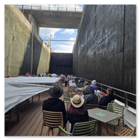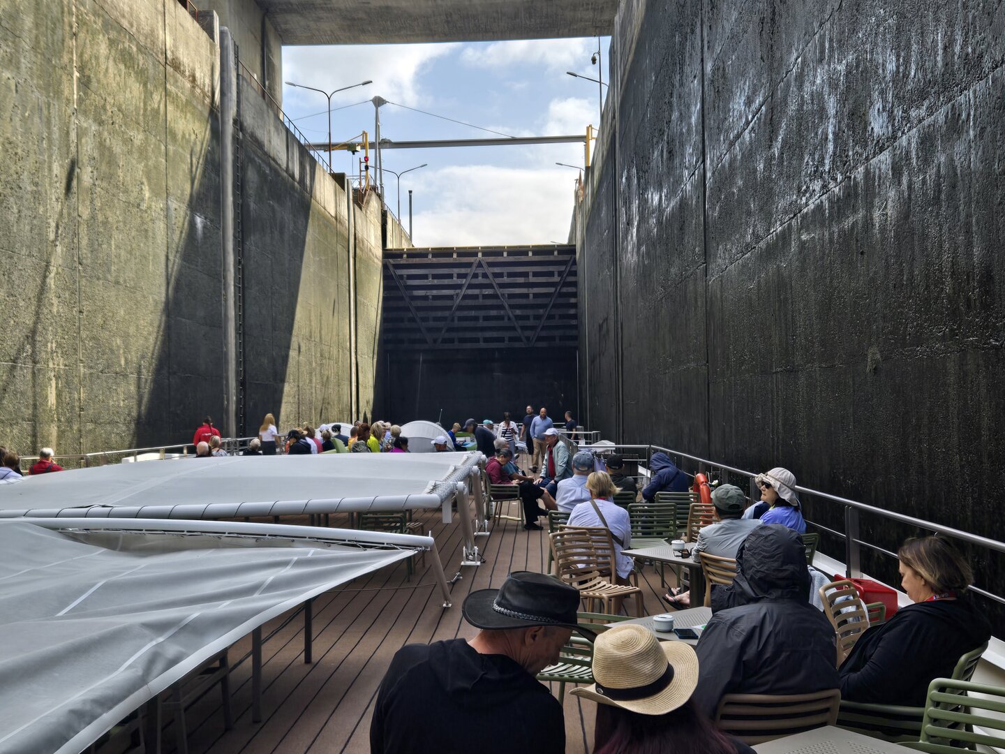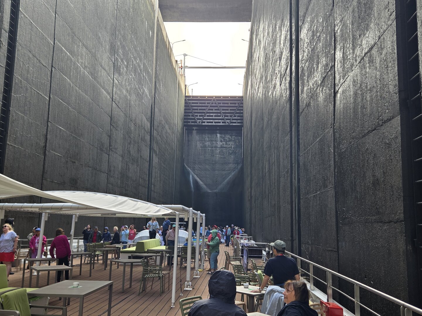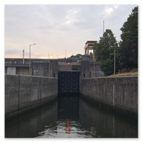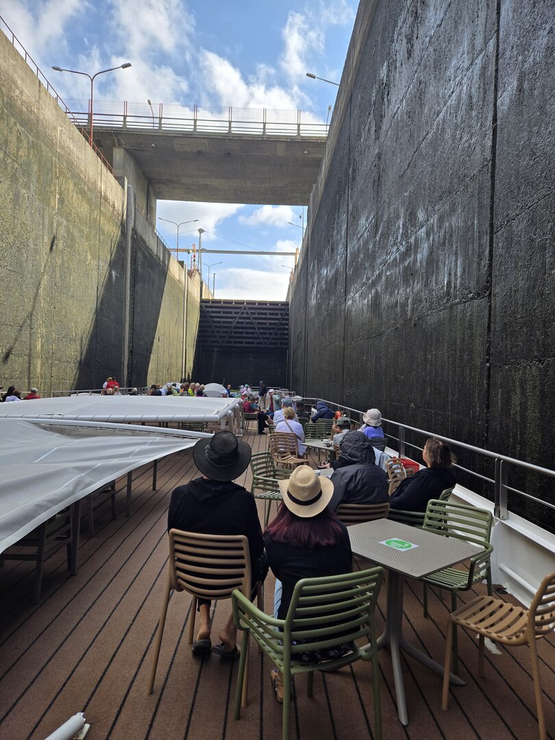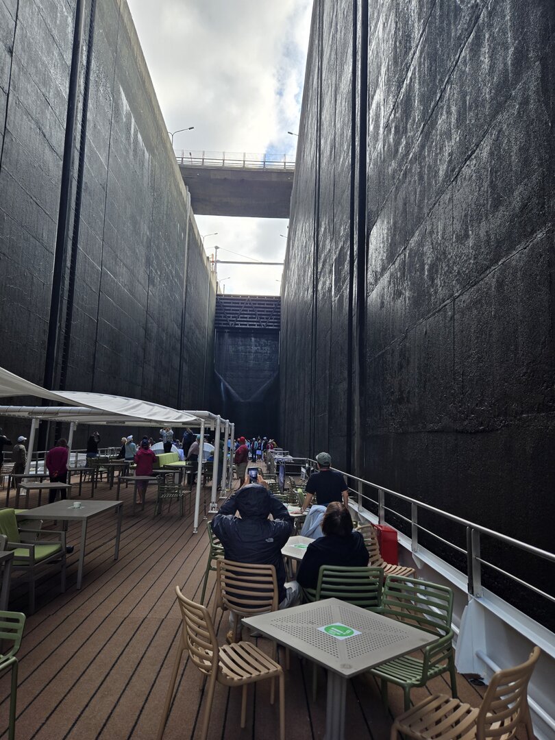 We did go through two locks and as you will see in the following pictures, there is not a whole bunch of margin for error concerning the width of river cruise ships. The second lock is the tallest in all of Europe at 115 feet. Pretty impressive.