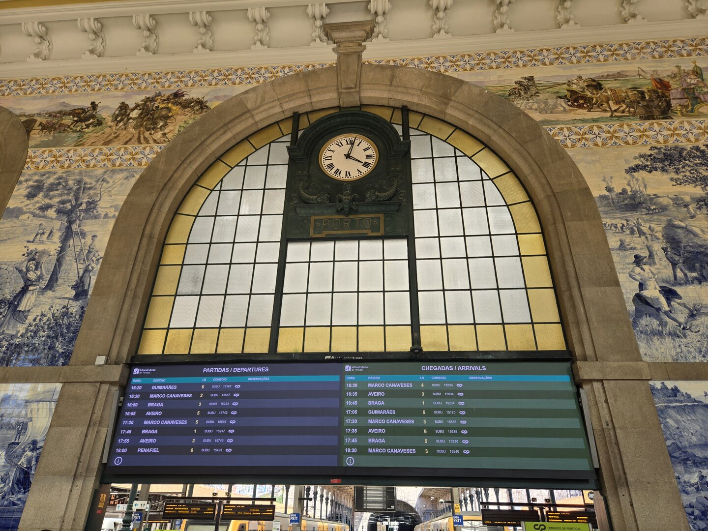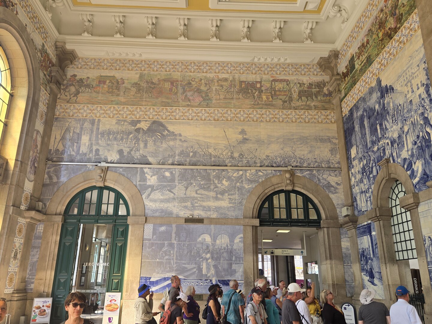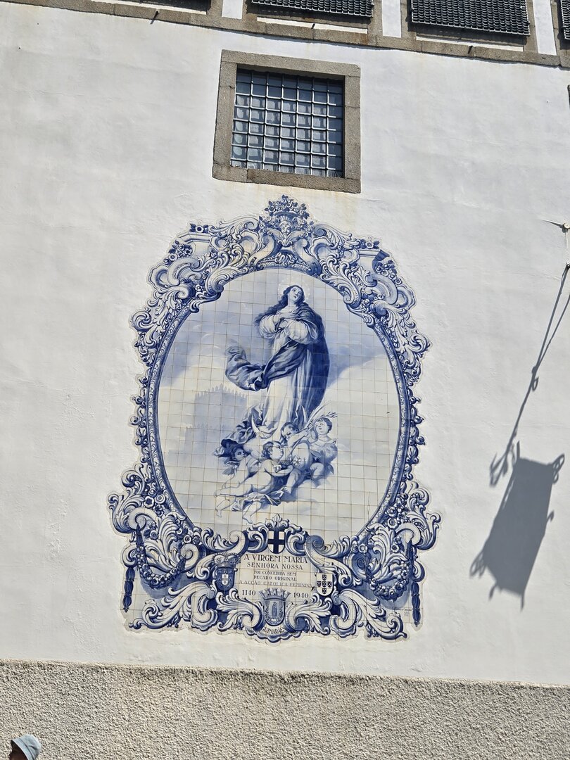 Heading back to Porto today for a walking tour that included a cathedral, the stock exchange and the Porto train station, famed for the beautiful hand-painted azulejos tiles. Looking at the pictures, note that the tiles on several walls have what appears to be a "gauze" over them. This was done to protect the tiles from damage/cracking during construction at the station.