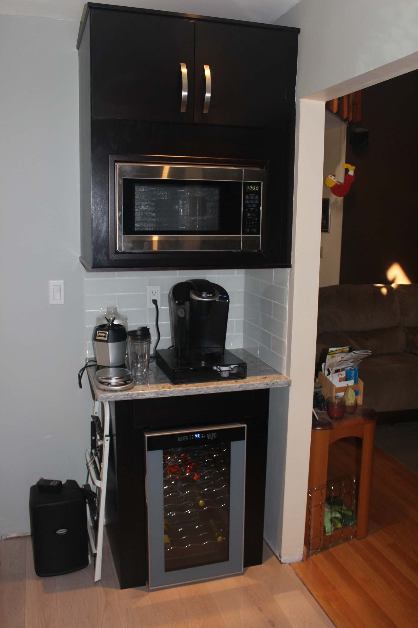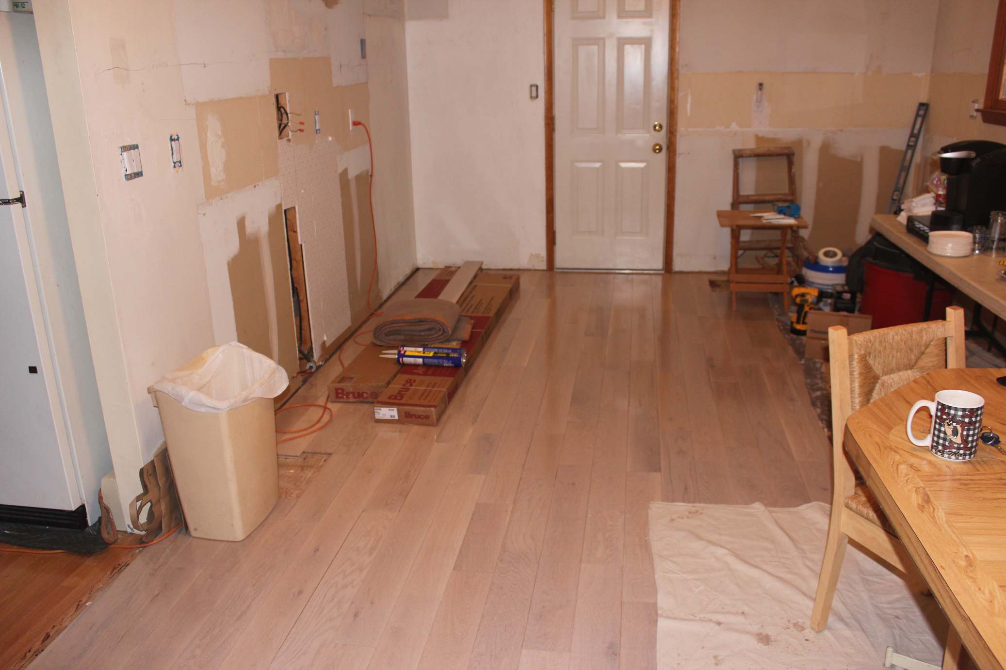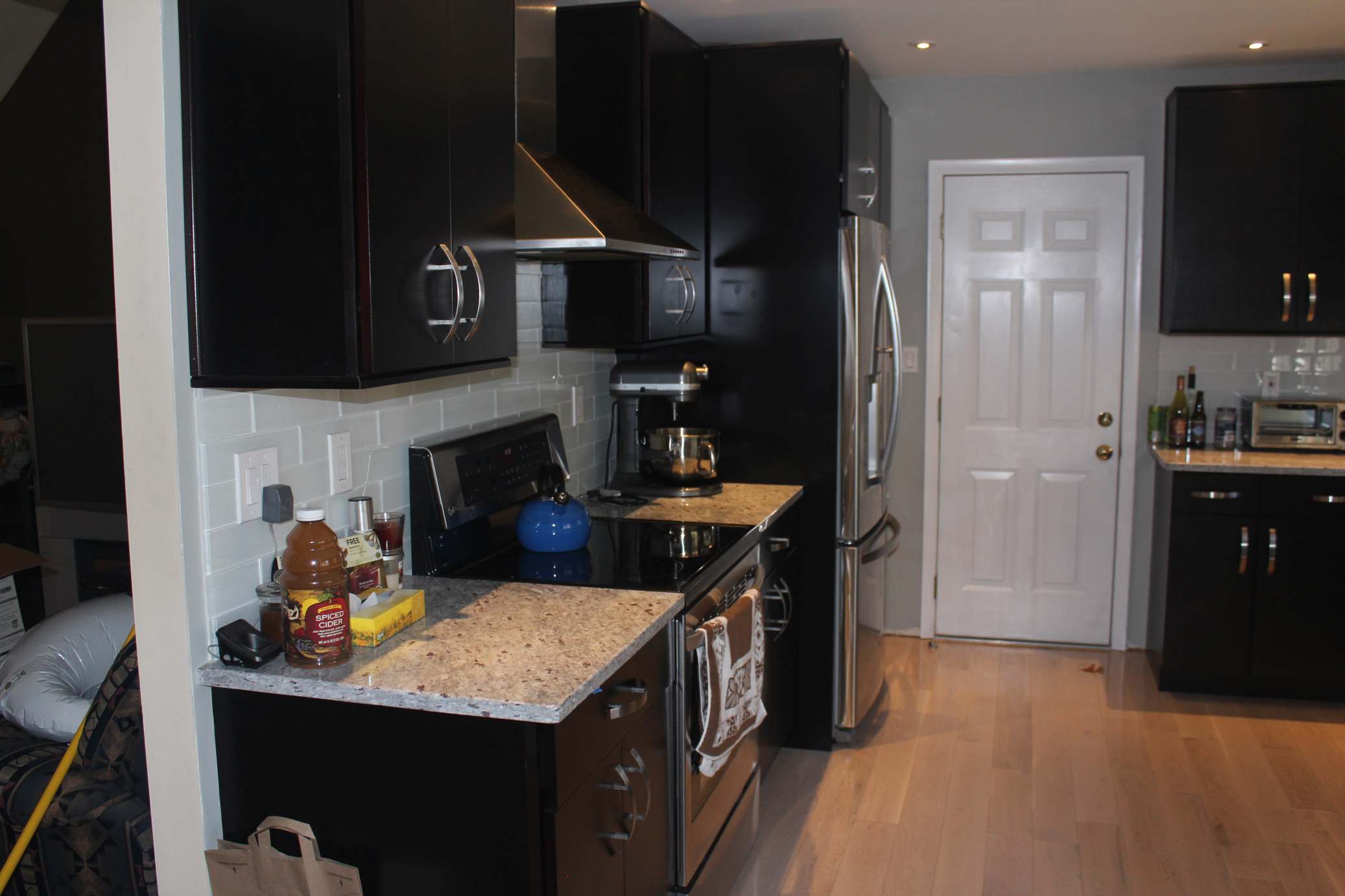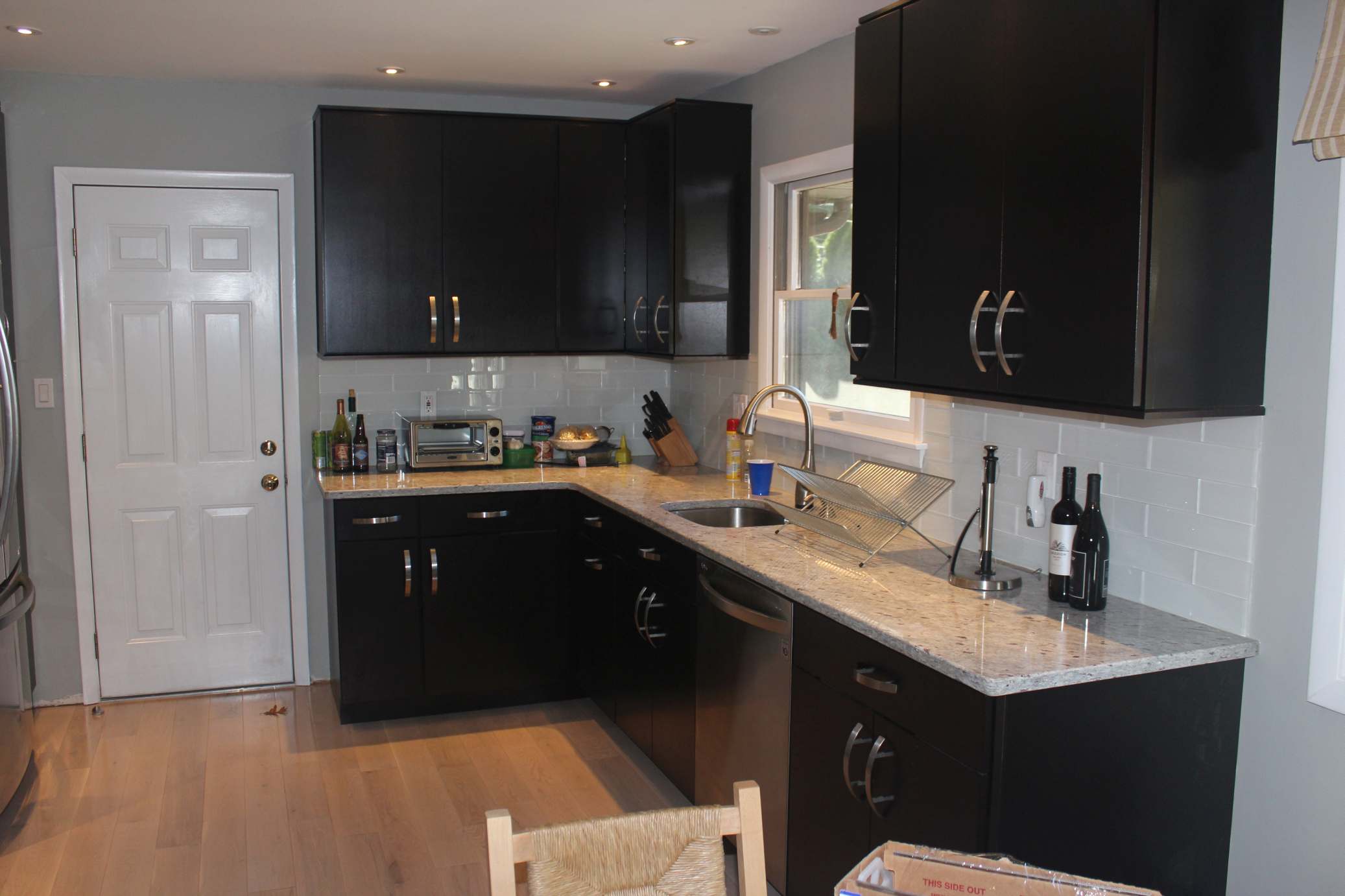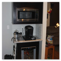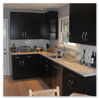 A few quick mentions is that the cabinets are maple in expresso brown with full wood (plywood) boxes and soft-close doors and drawers. The countertops are granite, the floor is 3/4” oak 5” wide planks and the appliances are LG. The East Northport Home Depot’s design department (Michelle) was an invaluable resource and highly recommended. They were the source for the cabinets, floor and countertops as well as much of the construction materials as you might expect. Appliances from P. C. Richards and the white glass backsplash was from Cancos.